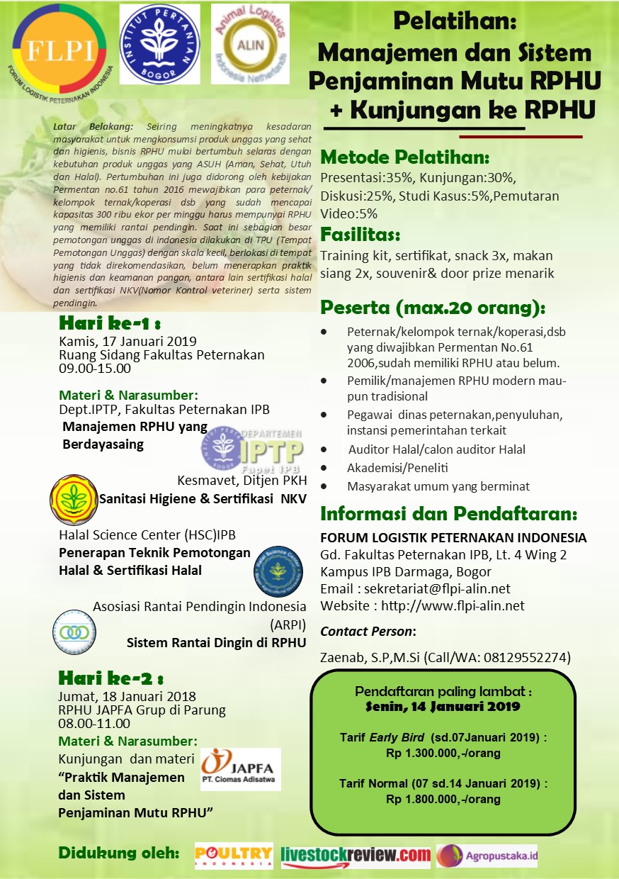 Pelatihan 2 Hari : Manajemen dan Penjaminan Mutu RPHU yang Berdayasaing dan Kunjungan RPHU
